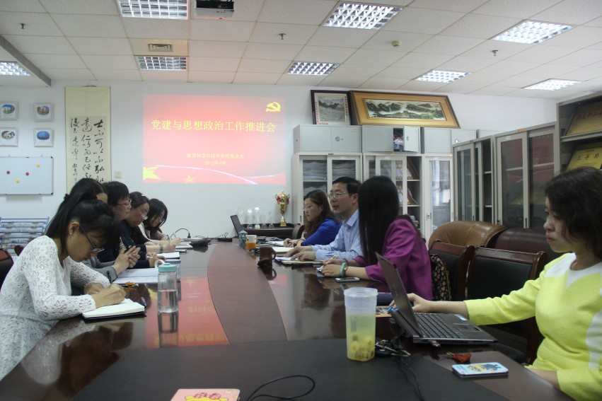 4月27日下午,ylzz总站线路检测在教4—224会议室召开党建与思想政治工作推进会。会议由院党总支书记戴兆骏主持,学院党总支委员、党组织干事、党支部书记参加了会议。