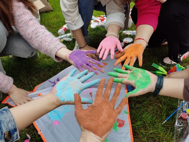 风筝绘制完成后,便是同学们最喜欢的环节——放风筝。伴着徐徐春风,各式各样的风筝载着同学们的美好祝愿飞上云端,在天空中你追我赶、上下翻飞,煞是好看。同学们奔跑欢笑,场面十分热闹,活动的气氛达到高潮。放风筝锻炼了同学们的身体,陶冶了情操,缓解了压力,增强了同学们的协调配合及团队合作精神,也增强了集体的凝聚力。此次活动在同学们的积极参与和共同努力下圆满结束,为春日的校园增添了一道美丽的风景。活动结束后,大家一起清理现场,带走了所有活动道具和垃圾。