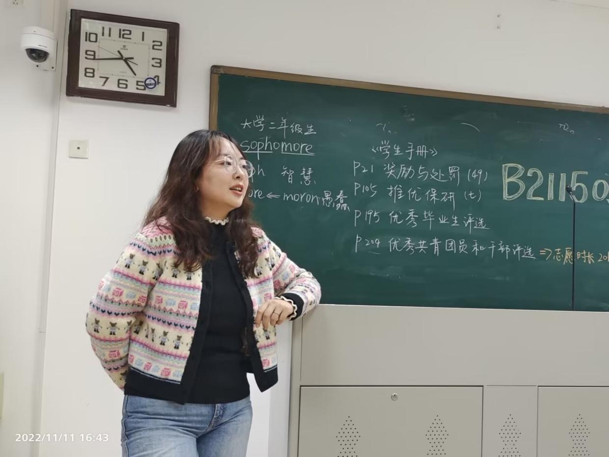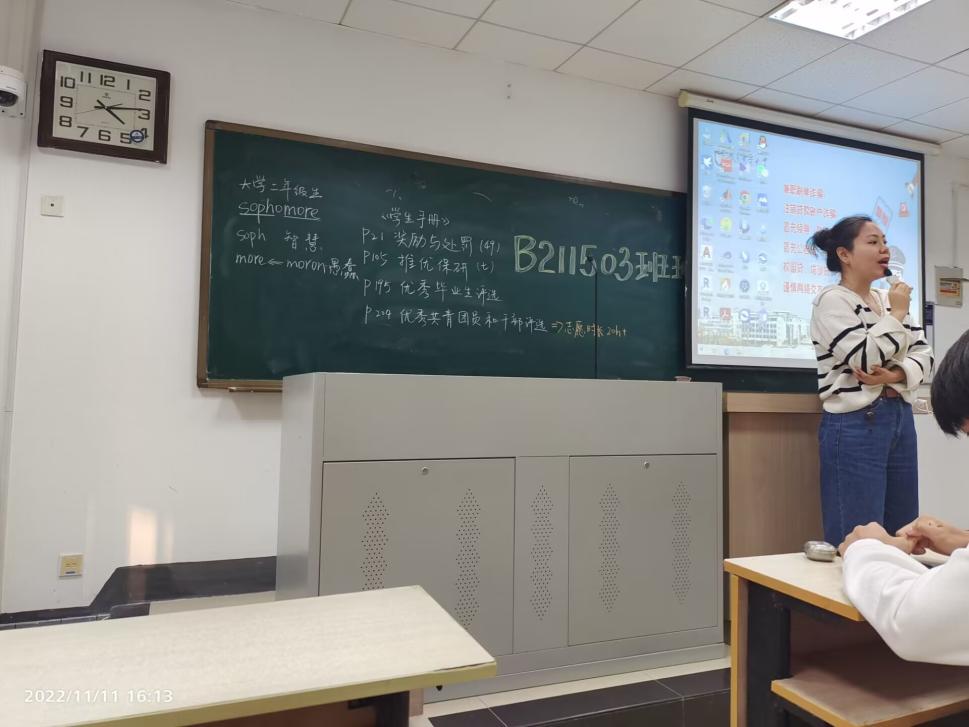 随后,班主任邢岩老师针对学期过半教学考试的相关事宜进行了讲话,也提醒同学们在学习之余,也应加强与同学之间的交际,尽早规划未来、明确人生目标。