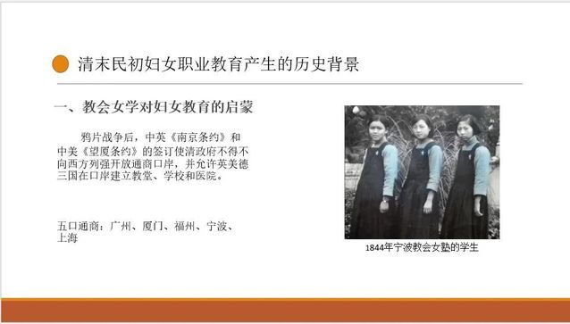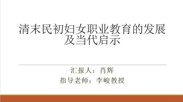会议伊始,研究生导师李峻老师向所有参会人员的到来表示热烈的欢迎并预祝本次交流会的胜利召开。随后,汇报人肖辉同学在“清末民初时期妇女职业教育的发展和当代启示”中的研究成果进行了阐述与分享。汇报中,肖辉同学首先提出,妇女社会地位的逐步提高,妇女平等受教育权得到保障,职业教育发展进入新阶段三方面,是其选题的内在缘由。接着,他着重介绍了清末民初妇女职业教育产生的历史背景,讲述了清末民初妇女职业教育的发生与发展,并分享了自己对于该主题的启示与反思。