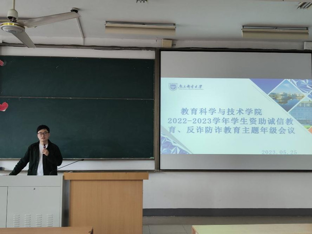 为积极落实学生资助诚信教育工作,进一步提升学生诚信意识,引导学生诚信受助,增强学生防范电信网络诈骗的能力,维护校园学生群体的合法权益,ylzz总站线路检测于2023年5月25日下午在教4—309开展了2020级学生资助诚信、反诈防诈主题教育年级会议,本次会议邀请了我校保卫处彭建森老师作为宣讲嘉宾,ylzz总站线路检测大三全体同学参加了本次会议,会议由2020级辅导员王永鹏主持。