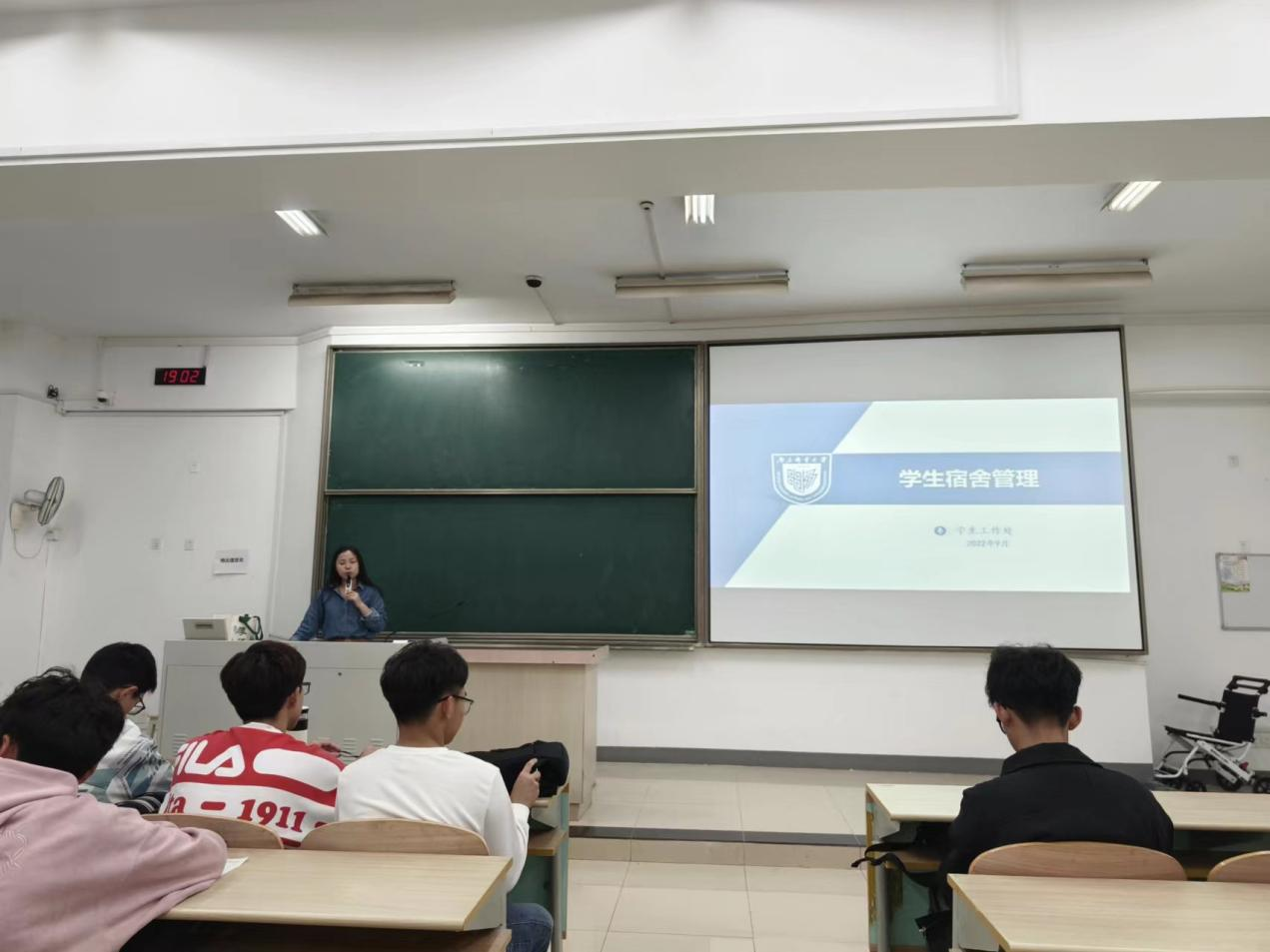 会议最后,吴老师提出宿舍安全管理的问题,就用电安全、人身安全、财产安全三个方面介绍宿舍内存在的安全隐患,并重点强调宿舍用电安全问题,通过详细解读近几个月来学校发生的因使用违章电器而引发火灾的案例,教育学生养成良好的宿舍安全意识,并提醒同学们严禁使用违章电器。