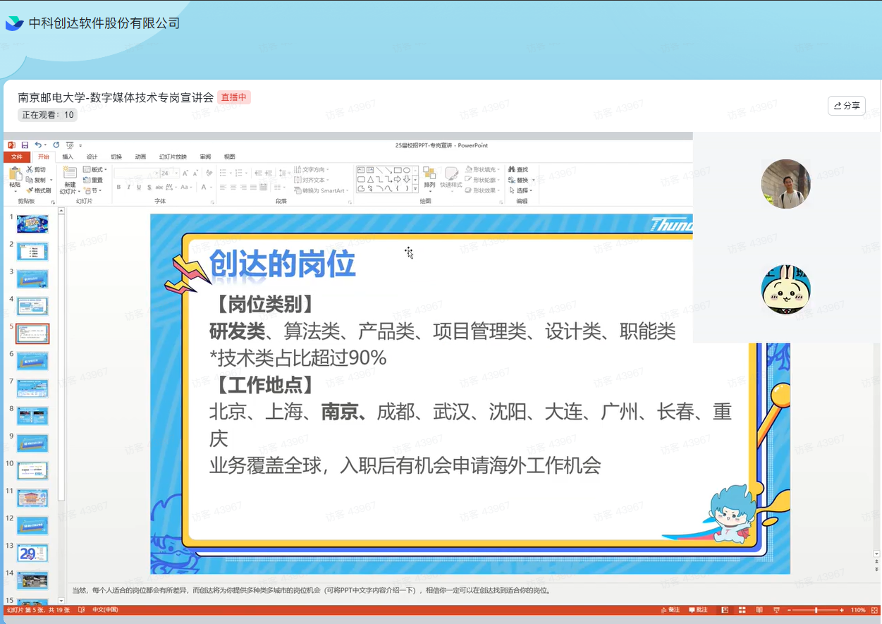 助力职业发展,校企共育英才。为深化产教融合,精准对接行业用人需求,3月7日下午2点,ylzz总站线路检测特邀全球智能操作系统领军企业中科创达软件有限公司举办线上专岗宣讲会。2021级本科生全程参与本次活动。