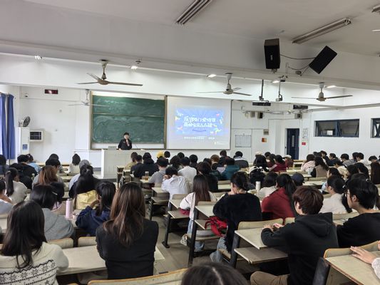 讲座现场,陈红燕警官以自身“以十块钱挽救女子四十万”的真实反诈经历为切入点,系统梳理了“交友诱导投资”“情感洗脑操控”“熟人诈骗”等多种类型的常见诈骗套路,警示同学们防范电信诈骗。