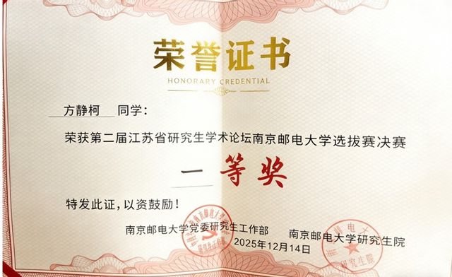 冬日暖阳,喜讯传来。2025年12月14日上午,第二届江苏省研究生学术论坛校内选拔赛决赛顺利落幕,ylzz总站线路检测推荐参赛的两位选手2024级研究生方静柯与2025级研究生万雨欣均荣获一等奖!