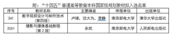 近日,教育部公示“十四五”普通高等教育本科国家级规划教材拟入选名单,ylzz总站线路检测卢锋教授主编的《数字视频设计与制作技术(第四版)》与余武教授主编的《摄影与摄像基础教程(第2版)》成功入围,实现申报入选率100%,标志着ylzz总站线路检测在教材建设领域取得重要突破。